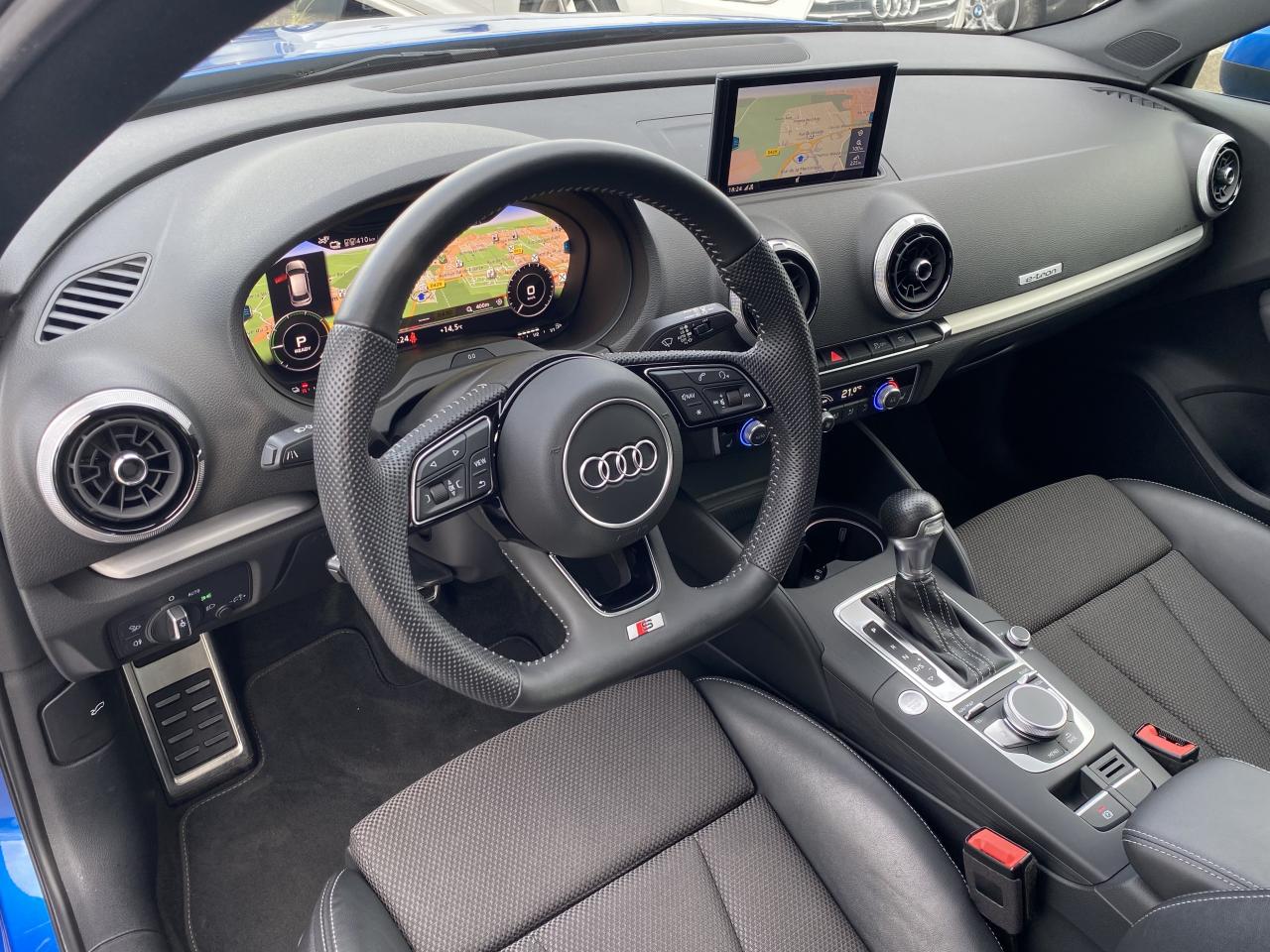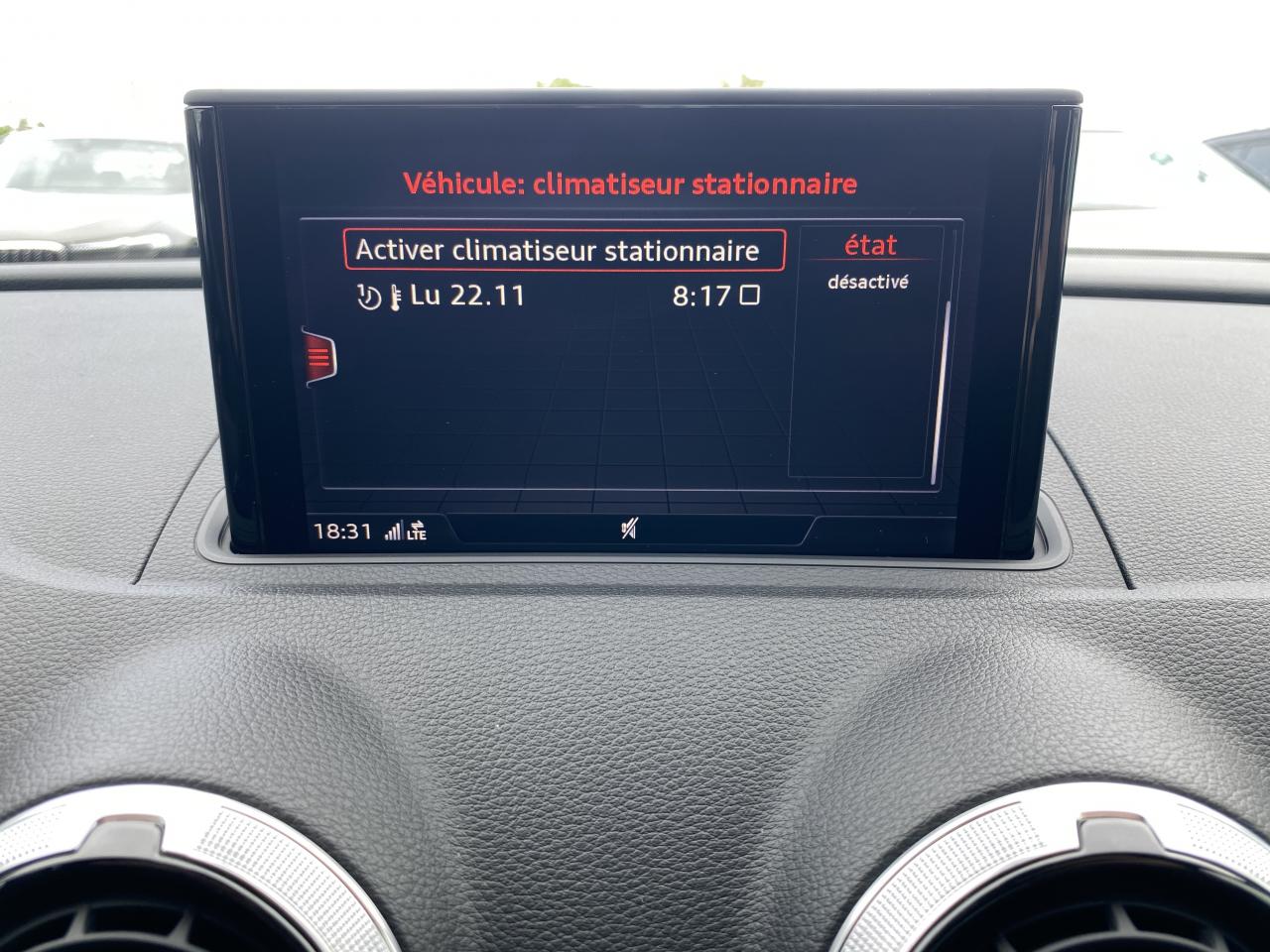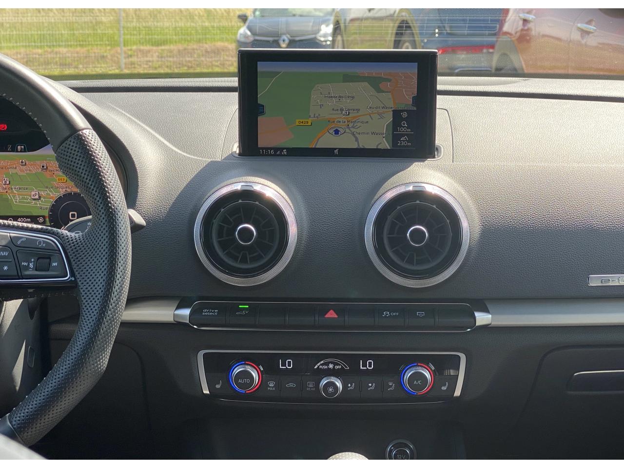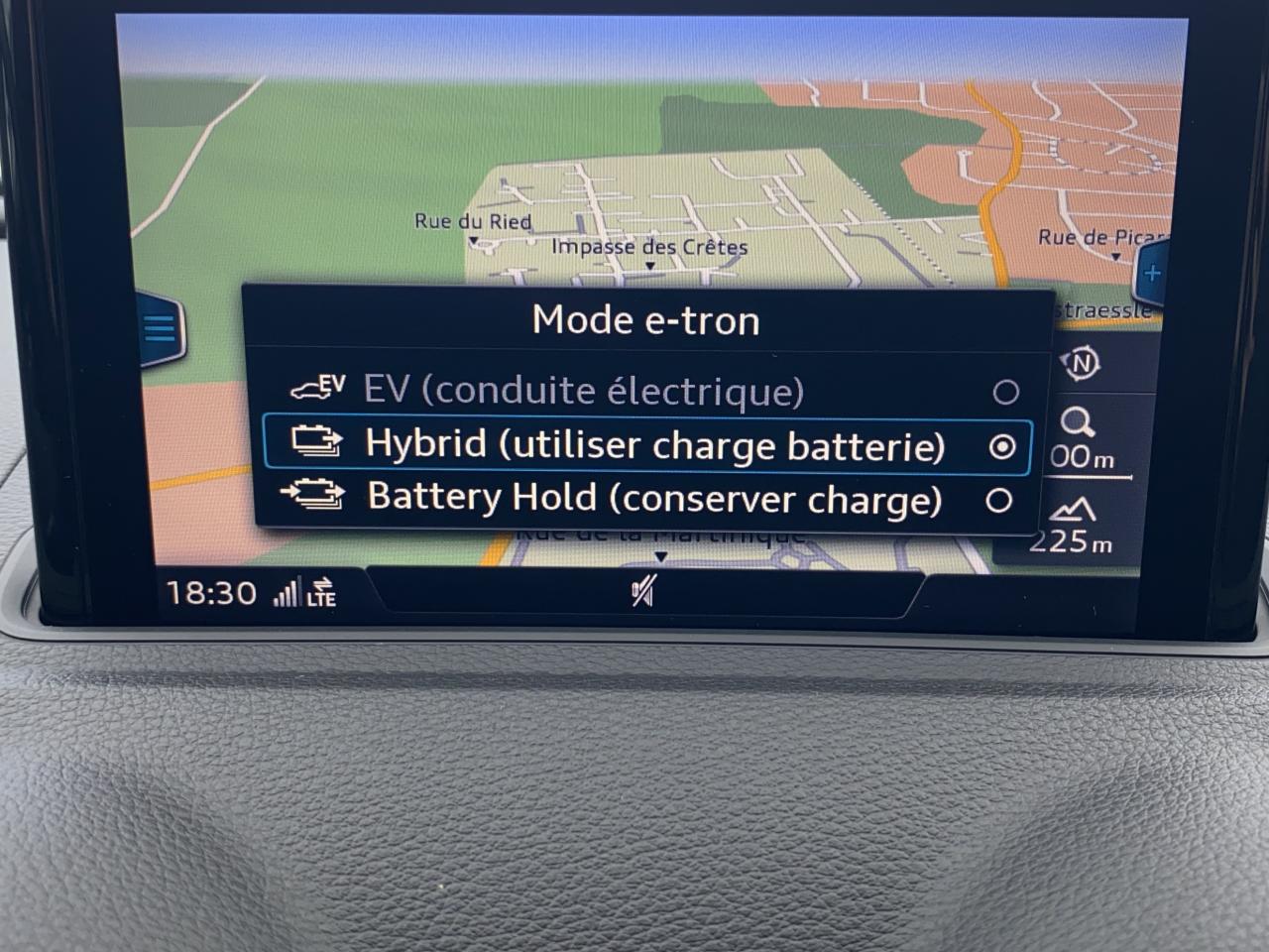 Accoudoir central avantaccoudoir centralaide au freinage d'urgenceallumage automatique des feuxAttelage amovibleAvertisseur de distance Audiavertisseur franchissement de lignechauffage stationnairedétecteur de pluieESPGPS couleurordinateur de bordPack Intérieur S linephares à LEDphares antibrouillardradar d'aide au stationnementsièges chauffantsstop & startverrouillage automatique des portes en roulantVolant multifonctionsVolant Sport 3 branches multifonction en cuir badgé S line avec méplat et poignées de volant en cuir perforéAnti-patinage (ASR)Audi drive select, permet différents réglages:Efficience, Confort, Dynamique, Auto et IndividuelAudi singleframe e-tron : calandre noir mat avec entourage et entretoises horizontales chromés ; avec prise de charge derrière les anneaux Audi chromés placés au centreBoîte automatique S tronic à 6 vitesses avec moteur électrique intégré : unité intégrée composée d'un embrayage, d'un moteur électrique et d'une boîte séquentielle 6 vitesses à double embrayage avClimatisation automatique confortContrôle de la pression des pneumatiquesDétecteur de pluie et de luminositéDirection assistée électromécaniqueFeux tout-tempsFrein de stationnement electromécaniqueIdentification du modèle/technologie : inscriptions e-tron à l'extérieur sur la calandre singleframe, le hayon, les ailes avant et les moulures de seuilInscriptions e-tron à l'intérieur sur le pommeau du levier de vitesses et sur le tableau de bord côté passager avantInterface BluetoothLecteur CD/MP3 avec un slot pour carte SDPare-chocs arrière e-tron : sans sortie d'échappement visible, incluant diffuseur noir mat et réflecteurs latérauxPare-chocs avant e-tron : grilles d'entrée d'air au design résolument sportif avec doubles entretoises chroméesRégulateur de vitesseSystème ABS avec répartiteur électronique de freinage EBV, programme électronique de stabilisation ESC avec détection de barres de toit et assistance au freinage d’urgenceSystème d'information du conducteur, avec écran couleurSystème de recharge : un chargeur standard pour une prise domestique et un câble mode 3 type 2 pour une station de charge publiqueTouche EV permet de choisir parmi les différents modes : EV (ou tout électrique)Volant cuir multifonction avec palettes au volantWattmètre sur le combiné d'instruments qui indique l'état du système