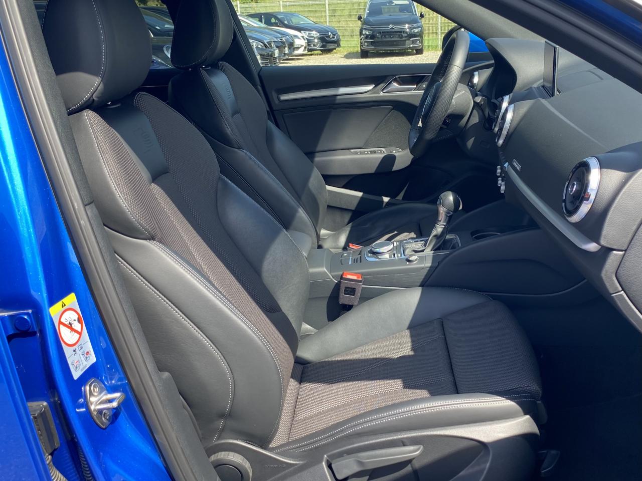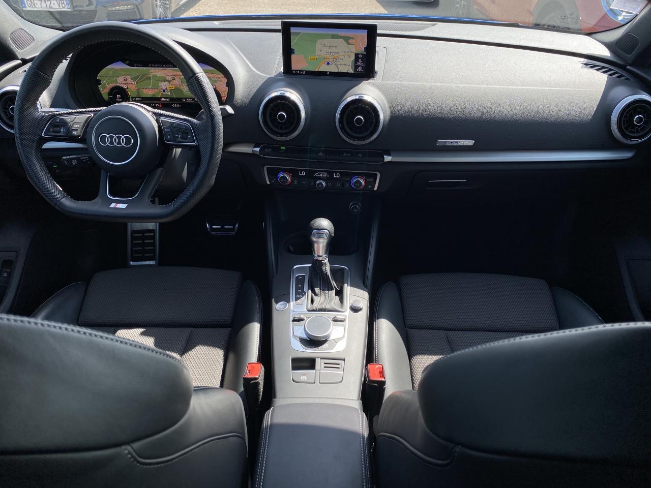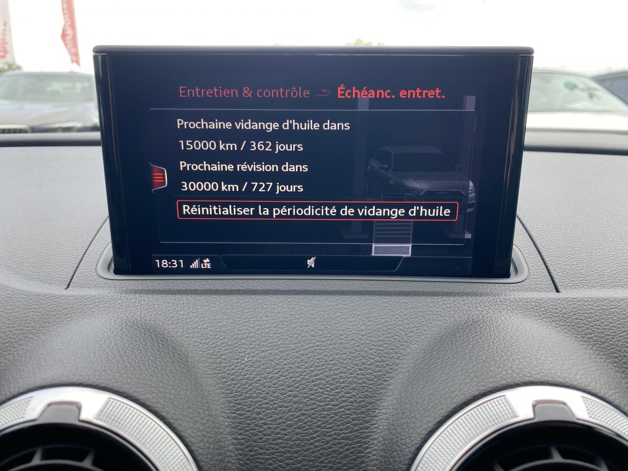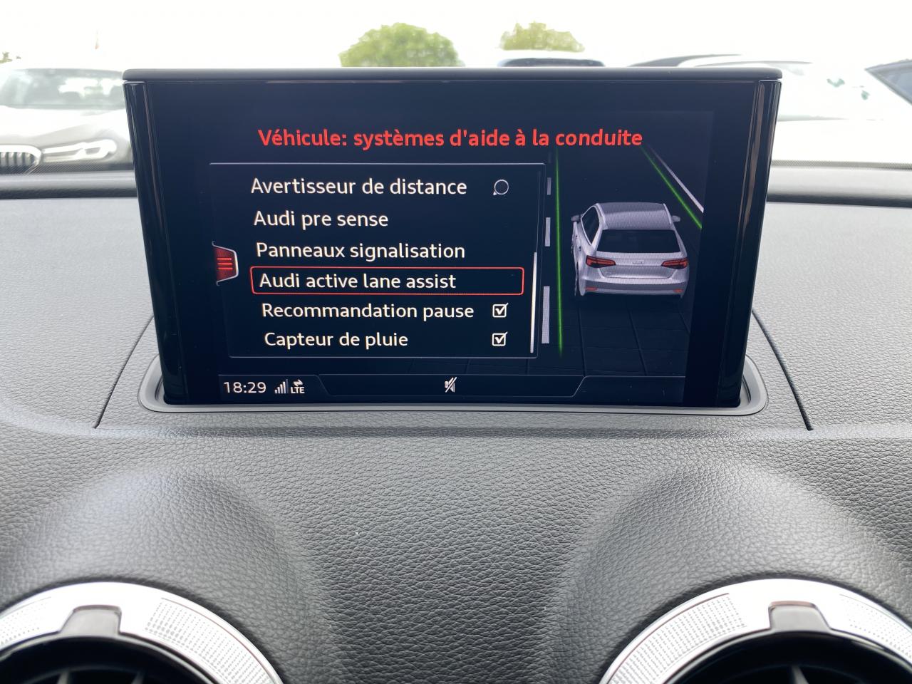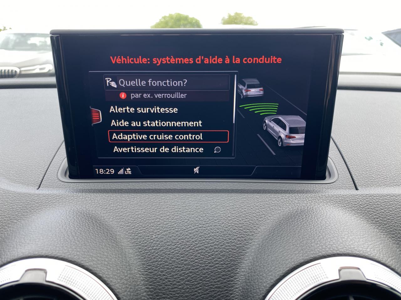 Adaptive cruise control avec Audi pre sense front avec fonction... Audi pre-sense basic Audi Side Assist Audi virtual cockpit Banquette arrière divisée en 3 parties 40/20/40... Feux de route assistés : gestion automatique du passage... Pack Aluminium extérieur Pack aluminium intérieur Pack Eclairage Peinture bleu Ara à effet cristal Phares à LED avec clignotants arrière à... Sièges avant chauffants