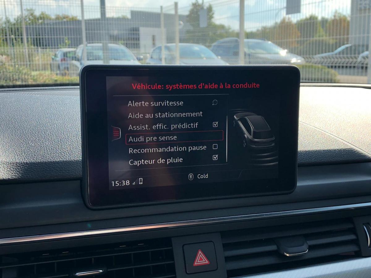 Aide au stationnement avant et arrièreAntipatinage ASR pour une motricité optimale, empêche le patinage des roues motricesAudi Parking System : système acoustique d'aide au stationnement arrièreAudi pre sense cityclimatisation automatiqueDésactivation de l'airbag passager (désactive aussi l'airbag latéral passager)Détecteur de pluie et de luminositéDirection assistée électromécaniqueEclairage d'ambiance de la console centraleESC (contrôle électronique de stabilisation)Fixation pour sièges enfants ISOFIX et Top Tether pour les places arrière extérieuresFreins à disque à l'avantInterface Bluetoothjantes 17 poucesLimitateur et régulateur de vitesseMMI navigationRétroviseur intérieur électrochromatique (automatique jour/nuit)Rétroviseurs extérieurs réglables et escamotables électriquement, dégivrants des deux côtés et buses de lave-glaces dégivrantesrétroviseurs rabattablesSellerie tissu ConceptSièges avant réglables manuellement en hauteur et en profondeurSystème d'information du conducteur avec écran couleur haute résolution de 7"Système Start-Stop et récupération d'énergie au freinageVolant 3 branches multifonction en cuir avec application chromée sur la branche inférieureXénon plus incluant réglage automatique du site des phares et feux diurnes par bandeau de LED (n'inclut pas les LED à l'arrière et les lave-phares)