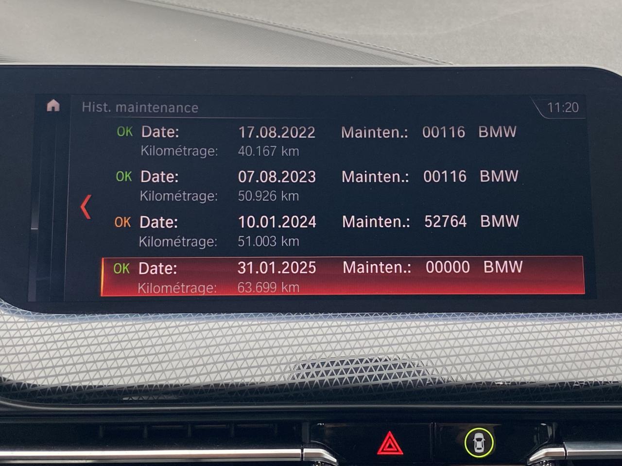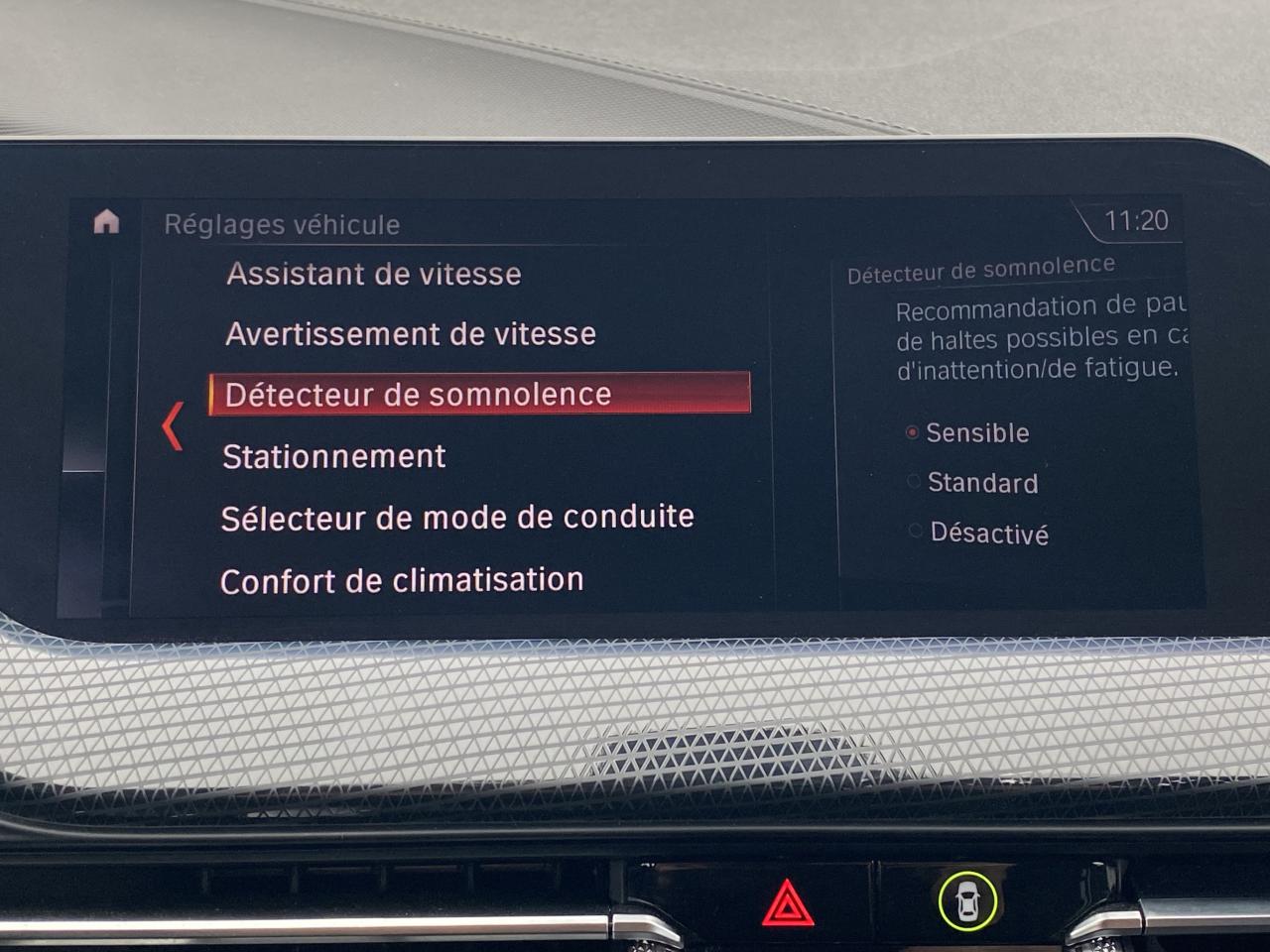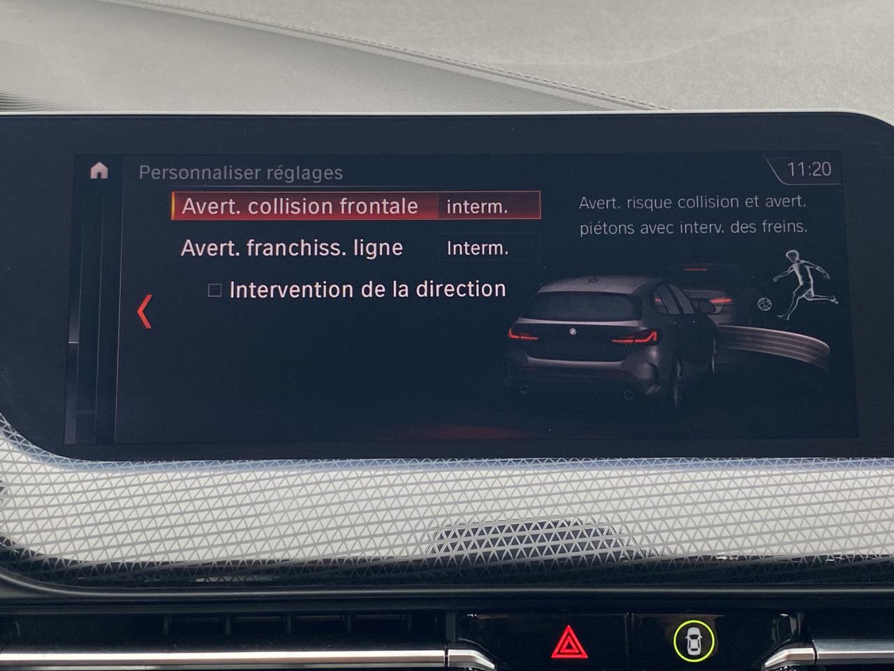 Accoudoir central avant coulissantaide au freinage d'urgenceAide au maintien dans la voie avec avertisseur de franchissement de ligne et correction de trajectoireAlerte vitesseallumage automatique des feuxApple CarPlay / Google Android AutoAssistant de vitesse avertisseur franchissement de lignechauffage stationnairedétecteur de pluieDétecteur de somnolence ESPGPS couleur - tactilelimiteur de vitesseordinateur de bordphares à LEDSécurité intelligente Sélecteur de mode de conduite - 4 modes : "ECO PRO", "Comfort", "Sport"…stop & startVibration du volant (syst. de sécurité intelligente BMW)volant multifonctionsAppel d'Urgence IntelligentClimatisation automatiqueContrôle dynamique de la stabilité DSCDémarrage sans cléDétecteur de pluie et allumage automatique des projecteursFeux de jour à LEDFixations ISOFIX aux places arrièreIndicateur de limitation de vitesseInserts décoratifs "Illuminated Berlin"Inserts décoratifs des pare-chocs avant et arrière finition noir brillantJantes alliage 17" style 549 Orbit GreyKit EclairagePhares avant Full LEDRégulateur de vitesse avec fonction freinage en descenteSellerie Tissu/Similicuir Sensatec anthraciteSeuils de portes en Aluminium avec inscription "BMW"Shadow Line brillantSystème anti-collision à basse vitesseSystème antiblocage des roues (ABS)Tableau de bord avec coûture contrastanteVolant Sport gainé cuir
