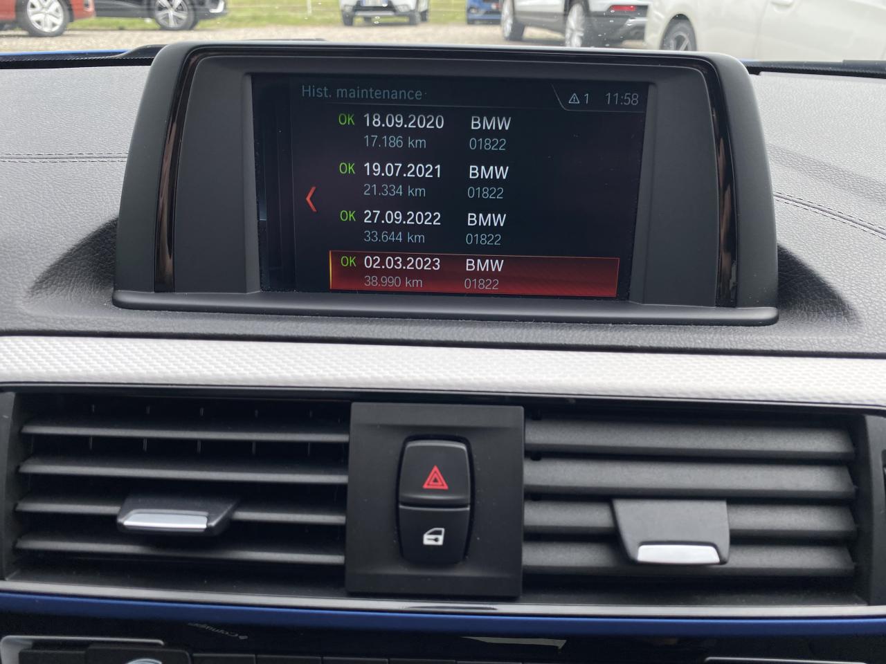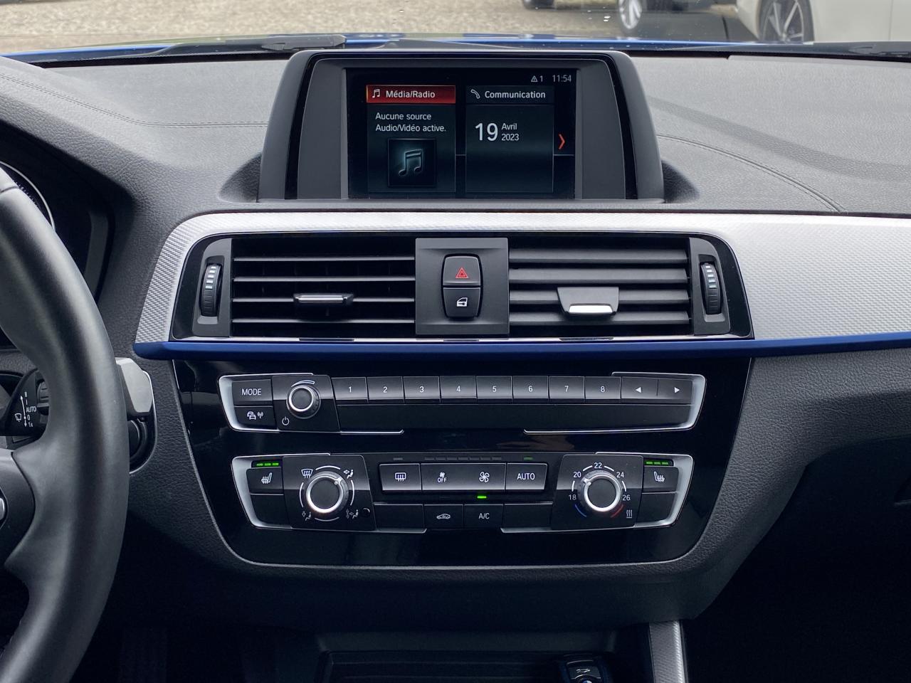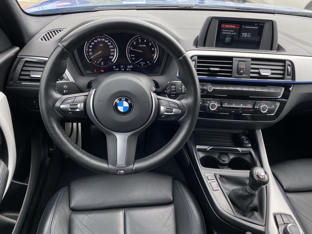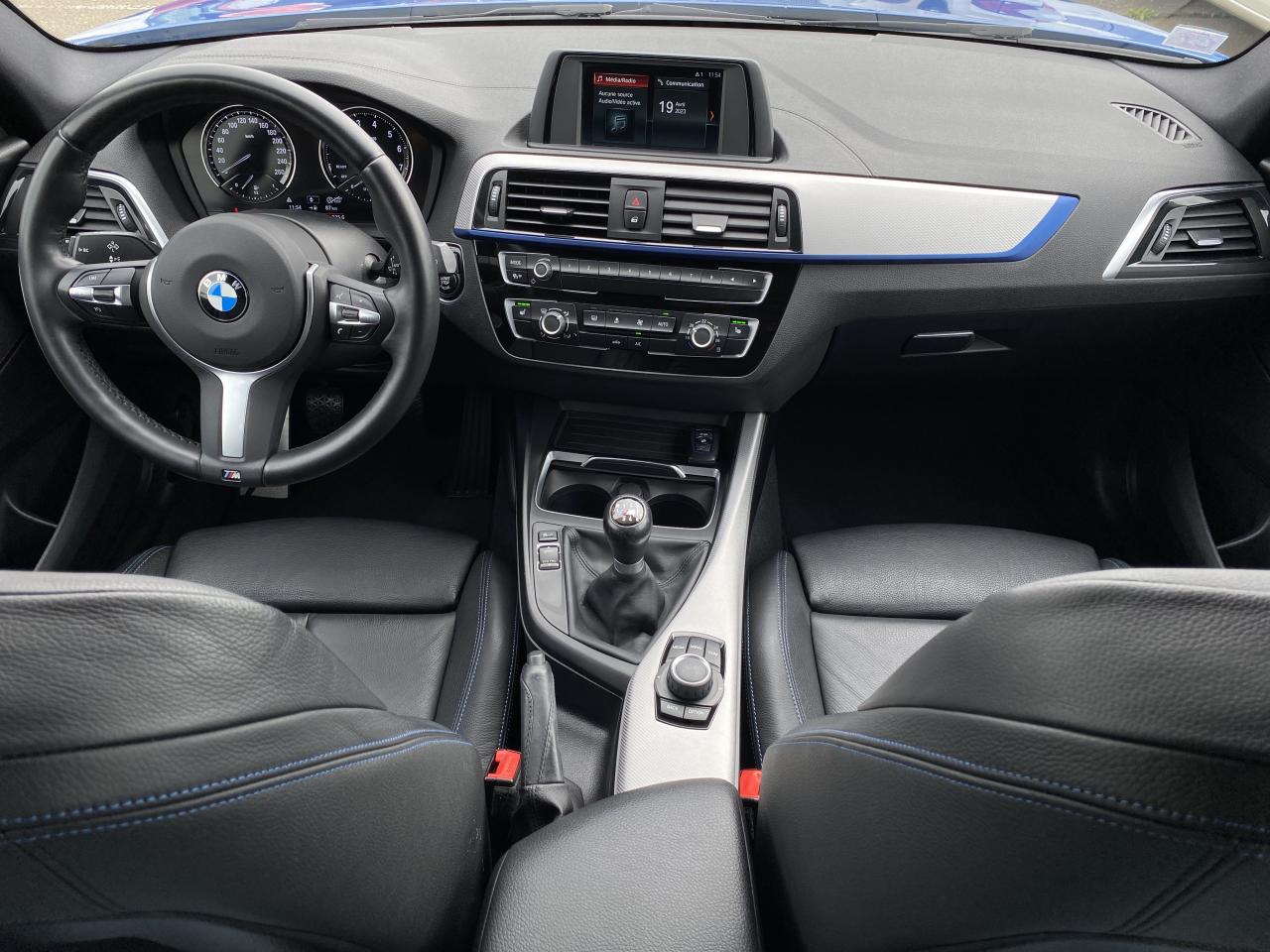 ABS (Antiblocage de roues)direction assistéeESPordinateur de bordAffichage BMW EfficientDynamics dans le cadran d'instrumentationAntenne de toit « aileron de requin »Anti-démarrage électroniqueAppel d'Urgence IntelligentClimatisation automatique avec filtre microporeux et fonction de recyclage d'airConsole centrale noir laquéeDémarrage sans clé via le bouton de démarrage Start/Stop avec contour chroméDétecteur de pluie et allumage automatique des projecteursFeux arrière avec guides de lumière à LEDFixations Isofix aux places latérales arrièreInterface Bluetooth et port USBMesure individuelle de pression des pneumatiques avec 3 niveaux d'alerteMode ECO PROOrdinateur de bord, Check-Control et indicateur de température extérieurePrise 12 V sur console centrale avantProjecteurs Full LEDRadars de stationnement avant et arrière PDC avec représentation graphique des obstacles sur l'écran d'information centralSélecteur de mode de conduite - 3 modes : "ECO PRO", "Confort" et "Sport"Sellerie cuir Dakota "Schwarz" à surpiqûres contrastées "Blau"Services BMW ConnectedDriveTouches multifonctions sur le volantVerrouillage centralisé avec télécommandeVolant Sport M gainé cuir