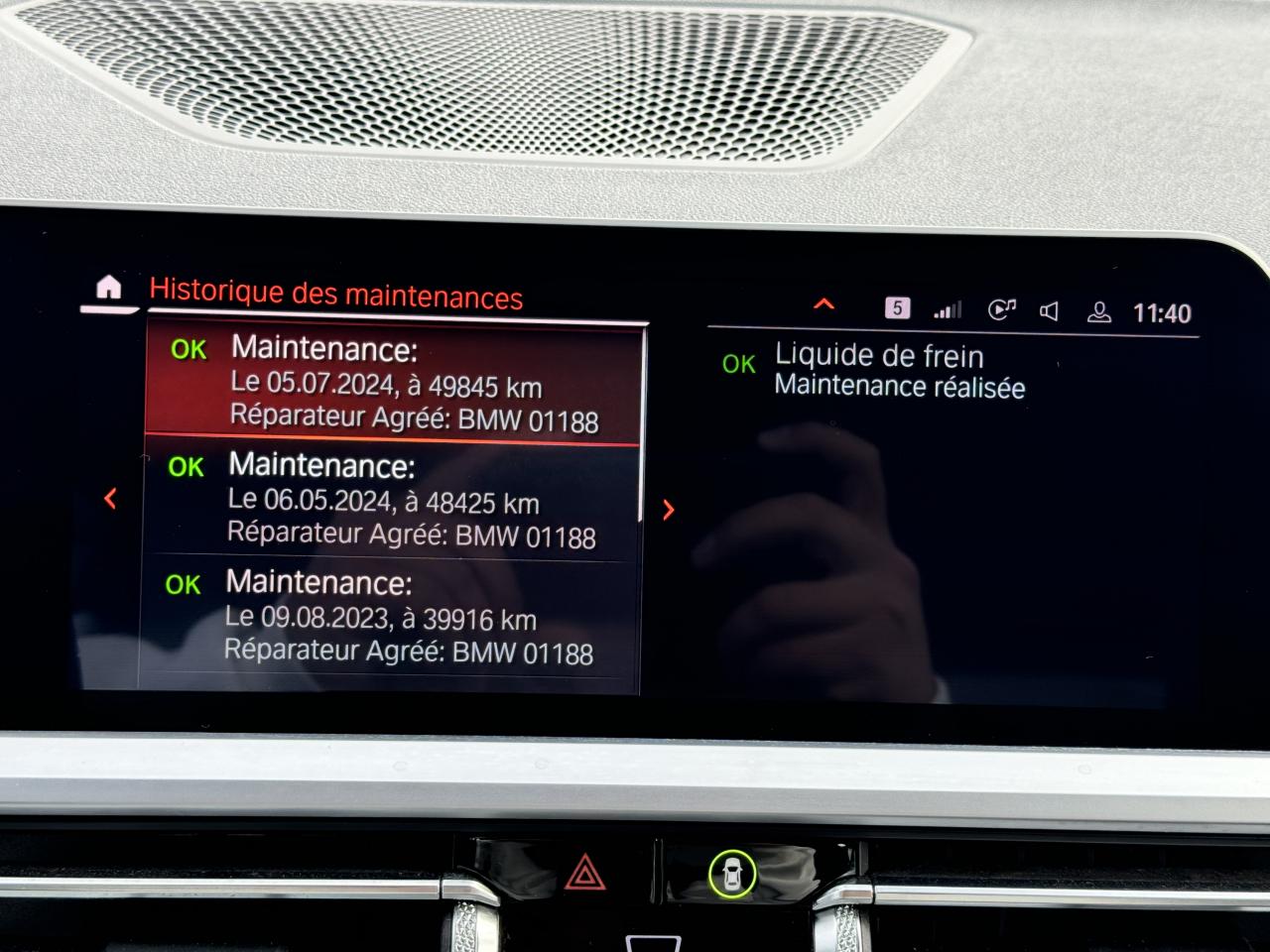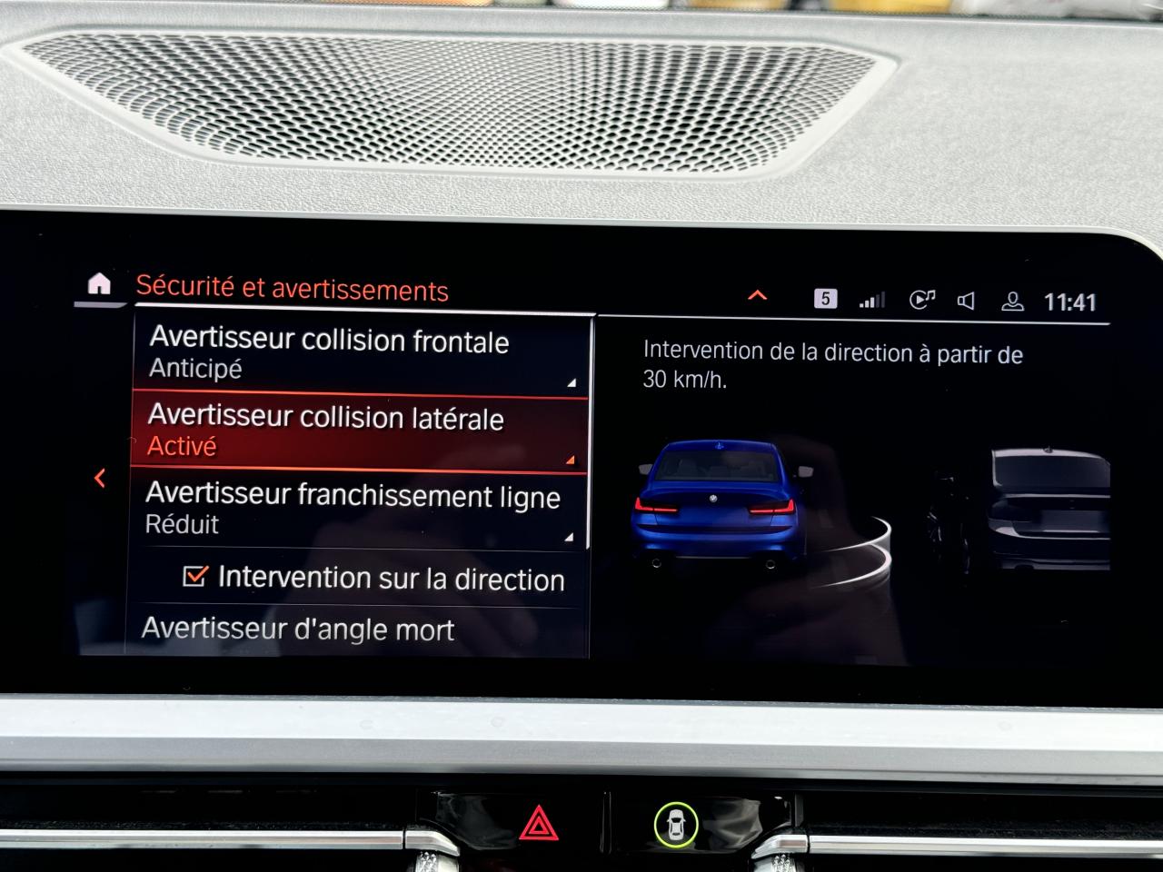 avertisseur franchissement de lignebluetoothGPS couleur - tactileintérieur cuir/alcantarajantes 19 poucessièges chauffantsSystème de haut-parleurs Hi-Fi ProfessionalAllumage automatique des projecteursApps VéhiculeAvertisseur de risque de collisionBMW Live Cockpit Navigation ProCarnet d'entretien électronique embarqué "BMW Service History"Clignotants avant et arrières à LEDClimatisation automatique 3 zones avec filtre microporeux et fonction de recyclage d'airContrôle Dynamique de la Stabilité DSC+ avec fonctionnalités étenduesContrôle Dynamique de la Traction DTCDémarrage sans clé via le bouton de démarrage Start/Stop avec contour chroméDétecteur de pluie ajustant automatiquement la fréquence de balayage des essuie-glaceDirection DirectDrive à démultiplication variableEclairage d'ambianceFeux arrière à LEDFeux de jour à LEDFeux de stop dynamiquesFixations ISOFIX aux places latérales arrières pour sièges enfantFrein de parking électromécaniqueFreins M SportMesure individuelle de pression des pneumatiquesOrdinateur de bord avec Check-Control et indicateur de température extérieureRadars de stationnement avant et arrière PDCRétroviseur intérieur anti-éblouissementRétroviseurs extérieurs rabattables électriquement et électrochromatique du côté conducteurSélecteur de mode de conduite - 3 modes : "ECO PRO", "Confort" et "Sport"Shadow-Line brillant BMW IndividualSièges Advanced pour conducteur et passager avantSystème anti-blocage des roues ABSSystème anti-collision à basse vitesseTouches multifonctions sur le volantVolant M gainé cuirVolant réglable en hauteur et en profondeur
