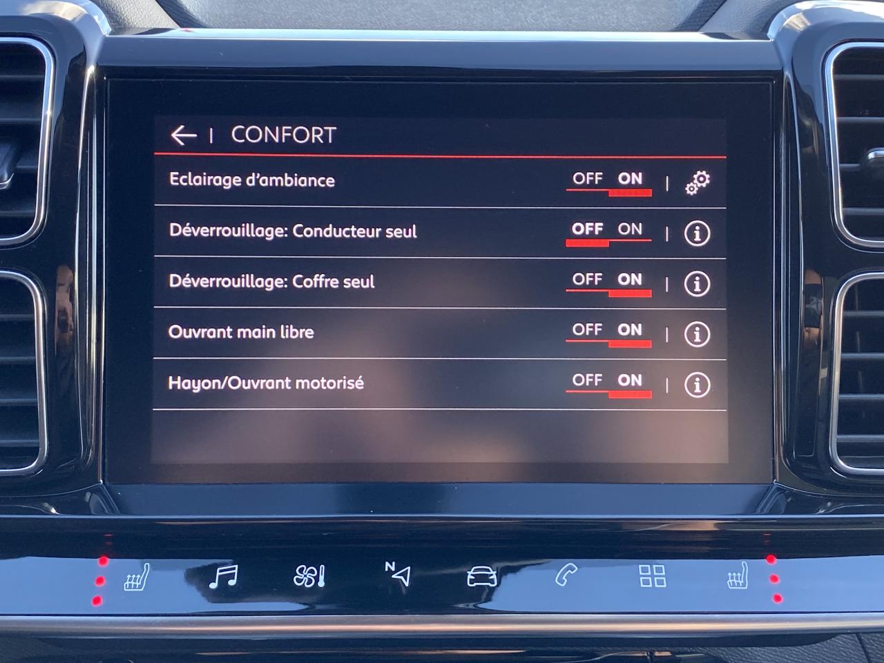 3 sièges arrière indépendants, coulissants, inclinables et escamotablesACC régulateur à distance Active Safety Brakeaide au freinage d'urgenceAlerte attention conducteurallumage automatique des feuxAssistance active au maintien de voieattelageauto-radio commandé au volantAvertisseur d'angles mortsavertisseur franchissement de ligneBoîte automatique EAT8 Peugeot caméra de reculcoffre électriquecontrôle pression des pneusdirection assistéefermeture centraliséefrein parking automatiqueGPS couleur - tactilei-Cockpit Virtual limiteur de vitesseMode EcoMode SPORTordinateur de bordPark assistphares antibrouillardProjecteurs directionnelsradar d'aide au stationnementsièges chauffantsstop & startverrouillage automatique des portes en roulantVolant multifonctionsABS avec répartiteur électronique de freinage (REF) et aide au freinage d'urgence (AFU)Accès et démarrage mains-libresAccoudoir central moussé à ouverture papillon et réfrigéréAérateurs en rang 2Allumage automatique des feux de croisementAllumage des feux de détresse en cas de forte décélérationCalandre supérieure Noir BrillantCITROËN Connect Nav avec Mirror Screen + CITROËN Connect Box avec Pack SOS et assistance inclusClignotants avant à LEDClimatisation automatique bizoneCommandes au volantCondamnation centralisée avec plipContrôle dynamique de stabilité (ESP)Détection de sous-gonflage des pneumatiquesDirection à assistance électriqueFeux arrière 3D à LEDFeux diurnes à LEDFrein de stationnement électrique automatiqueGarniture cuir grainé Graphite /Tissu Graphite - Ambiance Metropolitan GreyHayon électrique mains libresKit mains libres BluetoothPack City Camera PlusPack Drive AssistPack SafetyPack Safety +Projecteurs Full LEDSeuils de portes avant en inoxSystème de fixation ISOFIX aux places latérales arrière et passager avantSystème Stop & StartVolant en cuir Mistral