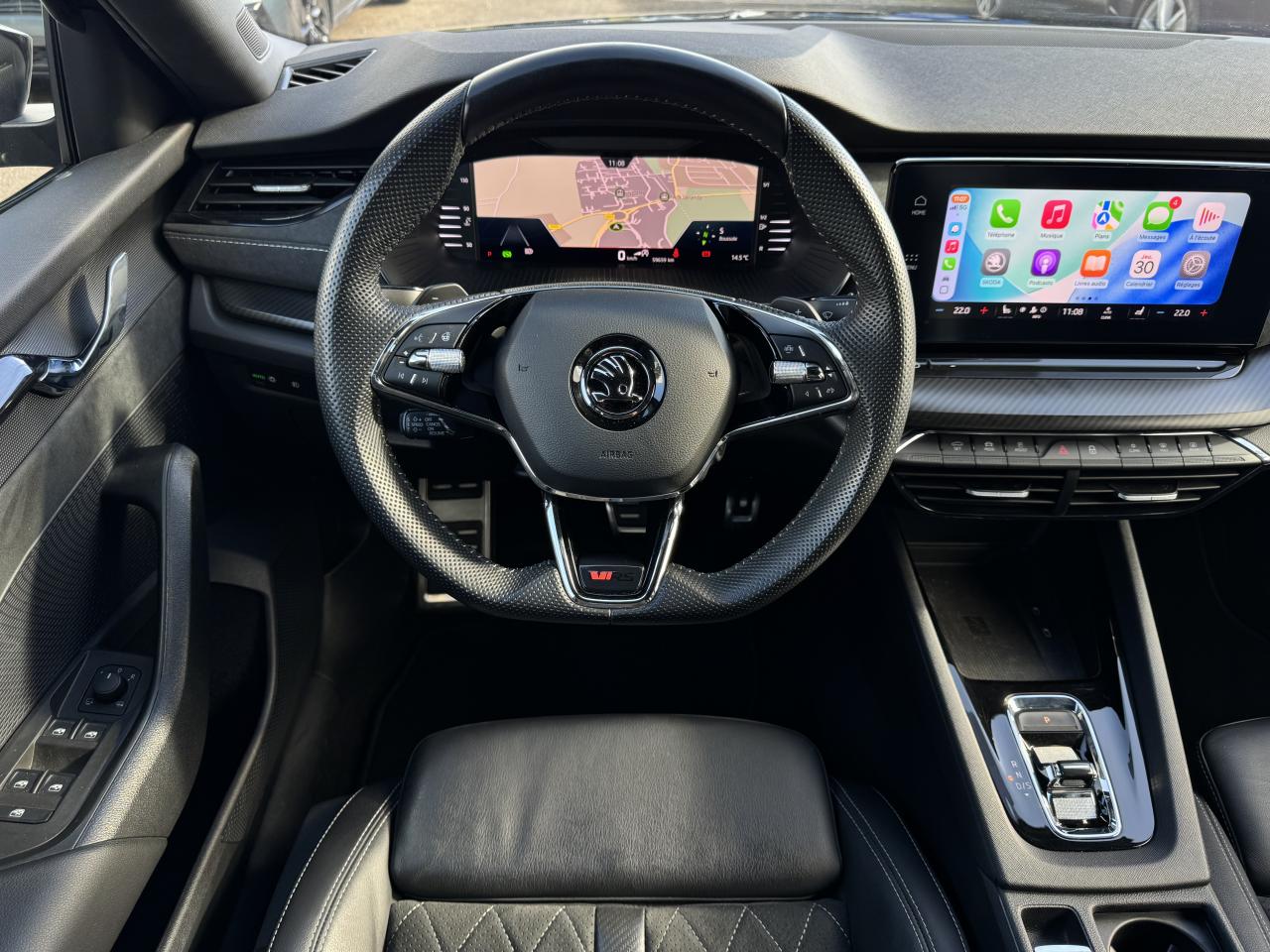 SKODA 2.0 TSI 245ch RS 1erMain Cuir Alcantara Webasto Siege Chauffant Av/Ar Keyless Acc, Noir, 14cv, 5 Portes, 1ère Mise en Circulation le 20-07-2022, Garantie 6 mois mois.