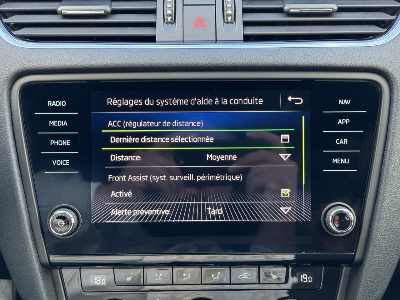 GPS couleur - tactileRégulateur adaptatif rétroviseurs degivrantsrétroviseurs rabattablesstop & startVolant chauffantABS : Système de freinage avec antiblocage des rouesAccoudoir central avantAllumage automatique des pharesCapteur de pluieClimatisation automatique bi-zone “Climatronic"Contrôle de pression des pneus ( TPMS )Digital CockpitDirection assistée électromécanique à assistance variable en fonction de la vitesseDriving Select : selection du profil de conduiteEclairage d'ambiance intérieur à LED 10 colorisFeux de jour à LEDFixations ISOFIX aux places arrière extérieures pour sièges enfantsFront Assistant : freinage automatique d'urgence incluant la protection des piétonsIntelligent light assistant : système de feux de route intelligentInterface multimédia USB compatible Apple connectivityKESSY : système d'autorisation d'accès, de démarrage et arrêt du moteur main-librePhares avant Full Led incluant les laves-phares haute pression et le contrôle dynamique d'éclairage des anglesRadars de stationnement avant et arrièreRétroviseur intérieur jour/nuit automatiqueRétroviseurs extérieurs électriques, dégivrants, électrochromatiques et rabattables électriquementSellerie Tissu/Alcantara RSSmartlink+ (Mirrorlink, Carplay et Android Auto) incluant la fonction SmartgateSystème mobile Bluetooth à reconnaissance vocaleSystème Start & Stop déconnectableVerrouillage centralisé à distanceVitres arrière électriquesVitres avant électriquesVolant cuir multifonctions intégrant les commandes radio / téléphoneVolant réglable en hauteur et en profondeur
