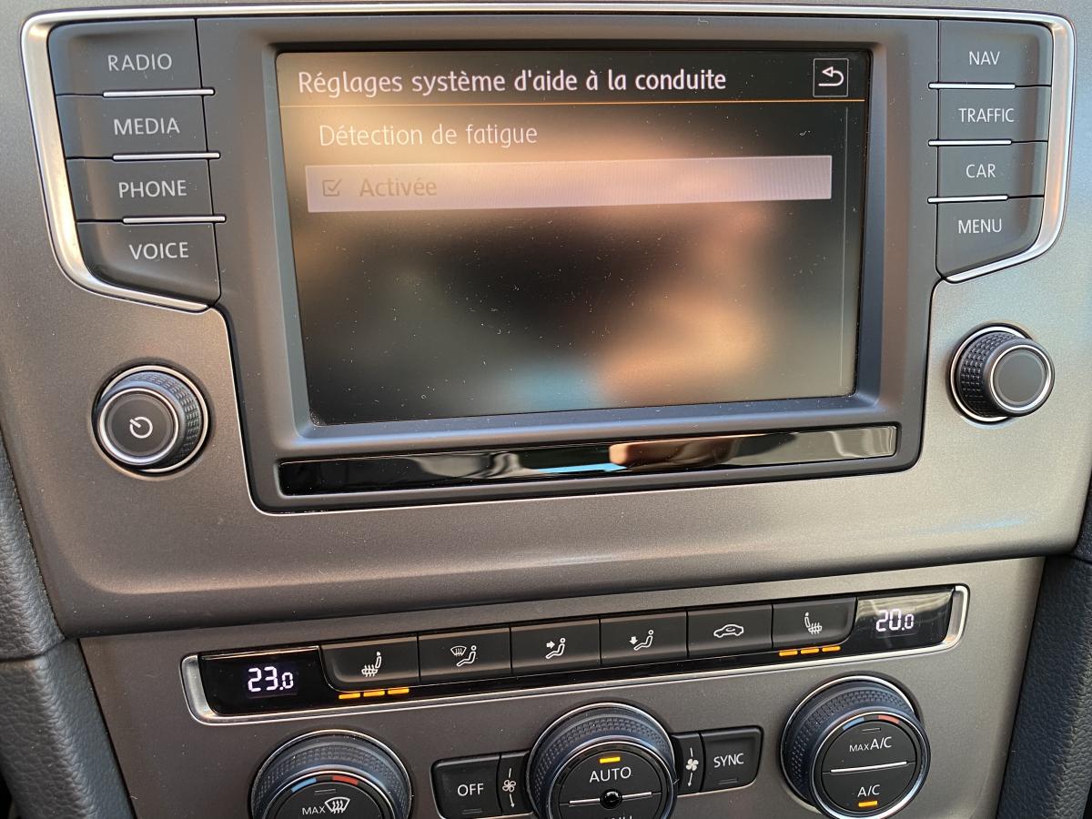 Aide au stationnement avant et arrière avec signaux sonores et visualisation de la distance des obstacles sur l'écranBanquette arrière rabattable 2/3 - 1/3 avec accoudoir central et trappe à skisClimatisation automatique ‘Climatronic' bi-zone, réglable séparément pour le conducteur et le passager avantcontrôle pression des pneusCorrecteur électronique de trajectoire ESP, amplificateur de freinage d'urgence, système d'antiblocage des roues ABS, blocage électronique de différentiel EDS, répartiteur électronique de freinage EBV, antipatinage électronique ASR , r&eacutDirection électromécanique à assistance variable en fonction de la vitesseDispositif de fixation pour deux sièges enfants suivant norme ISOFIX aux places extérieures arrièreFatigue Detection : Système de détection de fatigue du conducteurFrein de stationnement électrique avec fonction d'immobilisation en pente ‘Auto-Hold'. Le véhicule se maintient automatiquement en pente et une simple action sur l'accélérateur suffit à désactiver le freinGPS couleur - tactileInterface Bluetooth mains-libres pour téléphone portable et fonction audio streamingJantes en alliage léger 6,5J X 16“ ‘Novara' spécifiques ‘Lounge' et pneumatiques 205/55 R16 avec écrous antivolOrdinateur de bord multifonction avec affichage de la température extérieure, contrôle des élèments audios, de navigation, et du téléphonePack VisibilitéRégulateur et limiteur de vitesserétroviseurs électriquesrétroviseurs rabattablessièges chauffantsSystème 'Start-Stop' avec dispositif de récupération de l'énergie au freinageSystème Navigation & Infotainment ‘Discover Media'Vitres avant électriquesVolant 3 branches réglable en hauteur et en profondeurVolant multifonction en cuir avec commande de la radio, du système Bluetooth, de l'ordinateur de bord