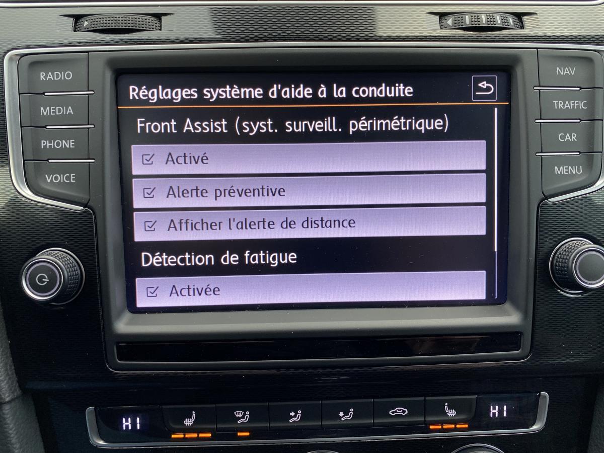 4 modes de conduite (Confort, Sport, Eco ou Personnalisé) Active Park Assist (système de parking semi-automatique)Aide au stationnement avant et arrière avec signaux sonores et visualisation de la distance des obstacles sur l'écranClimatisation automatique ‘Climatronic' bi-zone, réglable séparément pour le conducteur et le passager avantCorrecteur électronique de trajectoire ESP, amplificateur de freinage d'urgence, système d'antiblocage des roues ABS, blocage électronique de différentiel EDS, répartiteur électronique de freinage EBV, antipatinage électronique ASR , r&eacutDirection électromécanique à assistance variable en fonction de la vitesseDispositif de fixation pour deux sièges enfants suivant norme ISOFIX aux places extérieures arrièreFatigue Detection : Système de détection de fatigue du conducteurFrein de stationnement électrique avec fonction d'immobilisation en pente ‘Auto-Hold'. Le véhicule se maintient automatiquement en pente et une simple action sur l'accélérateur suffit à désactiver le freinKeyless Access : Système de verrouillage/déverrouillage sans clé et démarrage avec bouton start/stopOrdinateur de bord couleur avec affichage multifonctionPack VisibilitéPalettes au volantPre Safe Assist' : Système proactif de protection des passagersProjecteurs bi-Xénon directionnels pour feux de route et feux de croisement. Feux de jour à LED, éclairage statique d'intersection, réglage dynamique du site des phares, lave-phares et témoin de lave-glaceRégulateur et limiteur de vitesseRétroviseurs extérieurs électriques et dégivrants, asphérique côté conducteurSiège conducteur réglable en hauteursièges chauffantsSystème 'Start-Stop' avec dispositif de récupération de l'énergie au freinageSystème Front AssistVerrouillage centralisé avec télécommande à fréquence radio par clé rétractableVitres avant électriquesVolant multifonction en cuir avec commande de la radio, du système Bluetooth, de l'ordinateur de bord