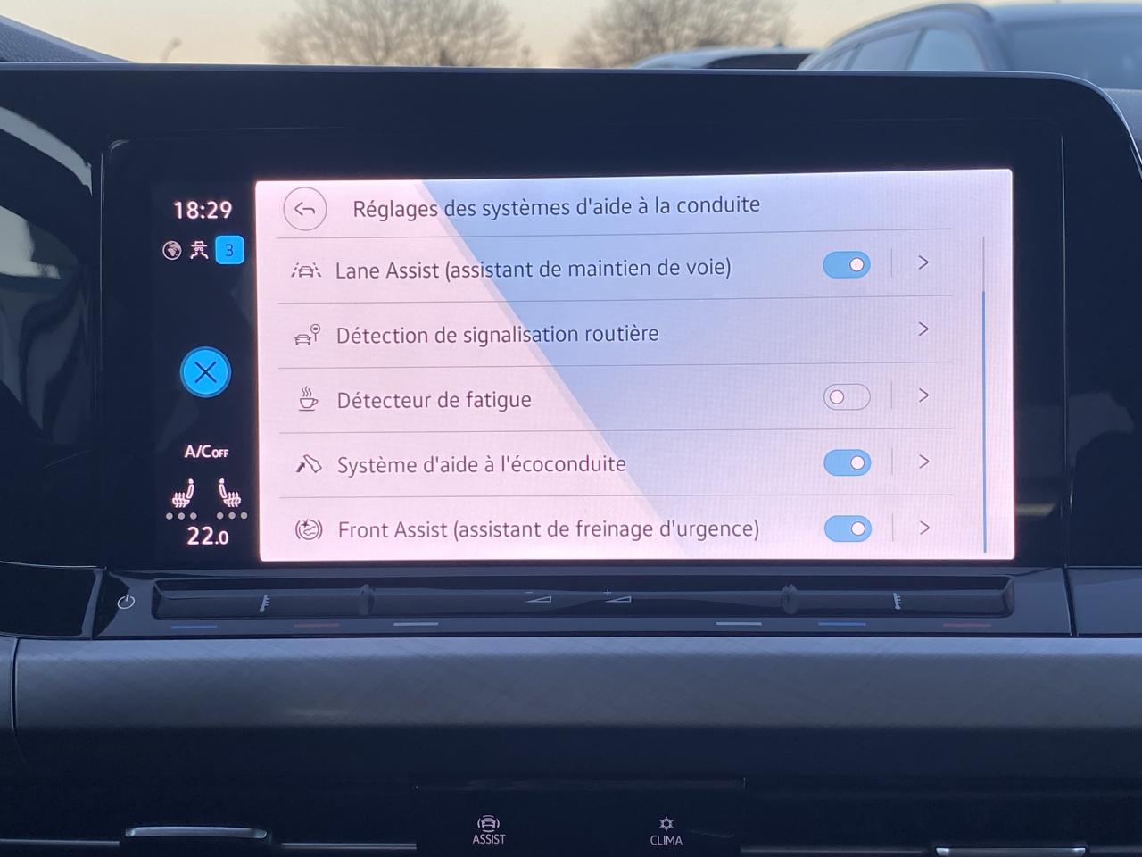 2 interfaces USB-C à l'avant et 2 prises de chargement USB-C derrière l’accoudoir pour les passagers arrièreallumage automatique des feuxApple CarPlay / Google Android AutoAuto hold: Frein de stationnement électrique avec fonction anti-reculavertisseur franchissement de ligneclimatisation automatiqueDémarrage sans clédirection assistéeESPFront assistGPS couleur - tactileradar d'aide au stationnementsièges chauffantsverrouillage automatique des portes en roulantAccoudoir central avant réglable en hauteur et en profondeur avec compartiment de rangementActivation automatique des feux de détresse en cas de freinage d'urgenceAlerte de perte de pression des pneusAntipatinage électronique ASRApp-Connect sans filBanquette arrière rabattable 2/3 - 1/3 avec trappe à skisContrôle vocal intuitifCorrecteur électronique de trajectoire ESPDigital Cockpit ProEclairage à LED de la plaque d'immatriculation arrièreEclairage d'ambiance - 10 couleursFatigue Detection : Système de détection de fatigue du conducteurFixation pour siège enfant ISOFIX (arrière, x2)Frein de stationnement électromécanique avec fonction d’immobilisation en pente ‘Auto hold’ et assistant de démarrage en côteFront assist avec freinage d’urgence et détection de piétonsIndicateur de température extérieure avec avertisseur de gelInterface Bluetooth pour téléphone portable (mains-libres)Lane Assistant : assistant de maintien dans la voiePack visibilitéPare-chocs avant et arrière couleur carrosserieParkPilot : Système d’aide au stationnement avant/arrière avec signaux sonores et visualisation de la distance des obstacles sur l’écranProjecteurs avant LEDRégulateur de vitesse adaptatif et prédictif 'ACC'Régulateur électronique de couple MSRRépartiteur électronique de freinage EBVRétroviseur intérieur électrochromeSellerie en tissu "Maze"Service d’appel d’urgence (inclus 10 ans et disponible indépendamment de l’inscription dans le système d’infotainment)Sign Assist: Reconnaissance des panneaux de signalisation et affichage sur l'ordinateur de bord et l'écran du système de radionavigationSpots de lecture (2) à l'avantSystème d'antiblocage des roues ABSSystème Navigation & Infotainment ‘Discover Media'Système Start/ Stop avec récupération d'énergie de freinageTémoin et alerte sonore de non-bouclage des ceintures de sécurité avant et arrièreVerrouillage centralisé avec télécommande à fréquence radio par clé rétractableVolant multifonction en cuir