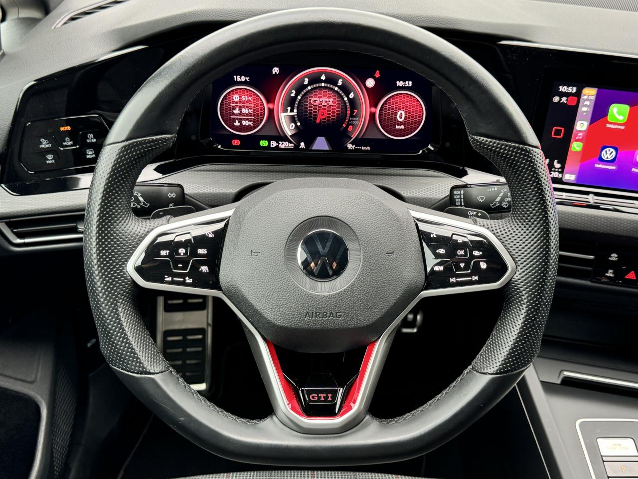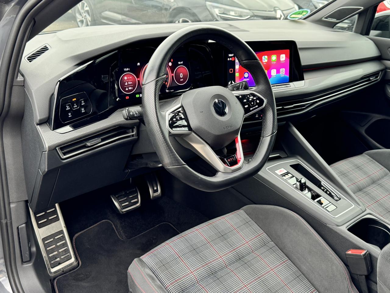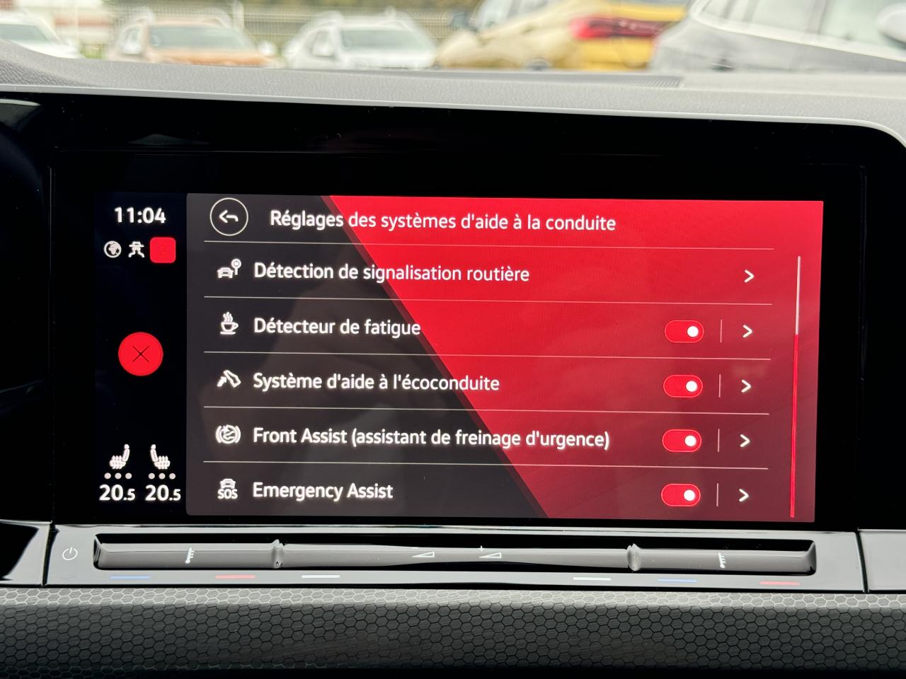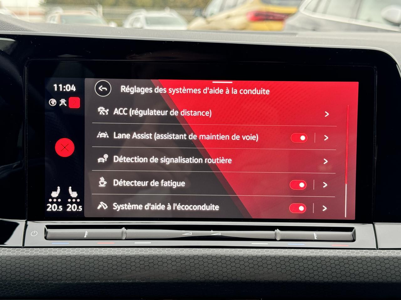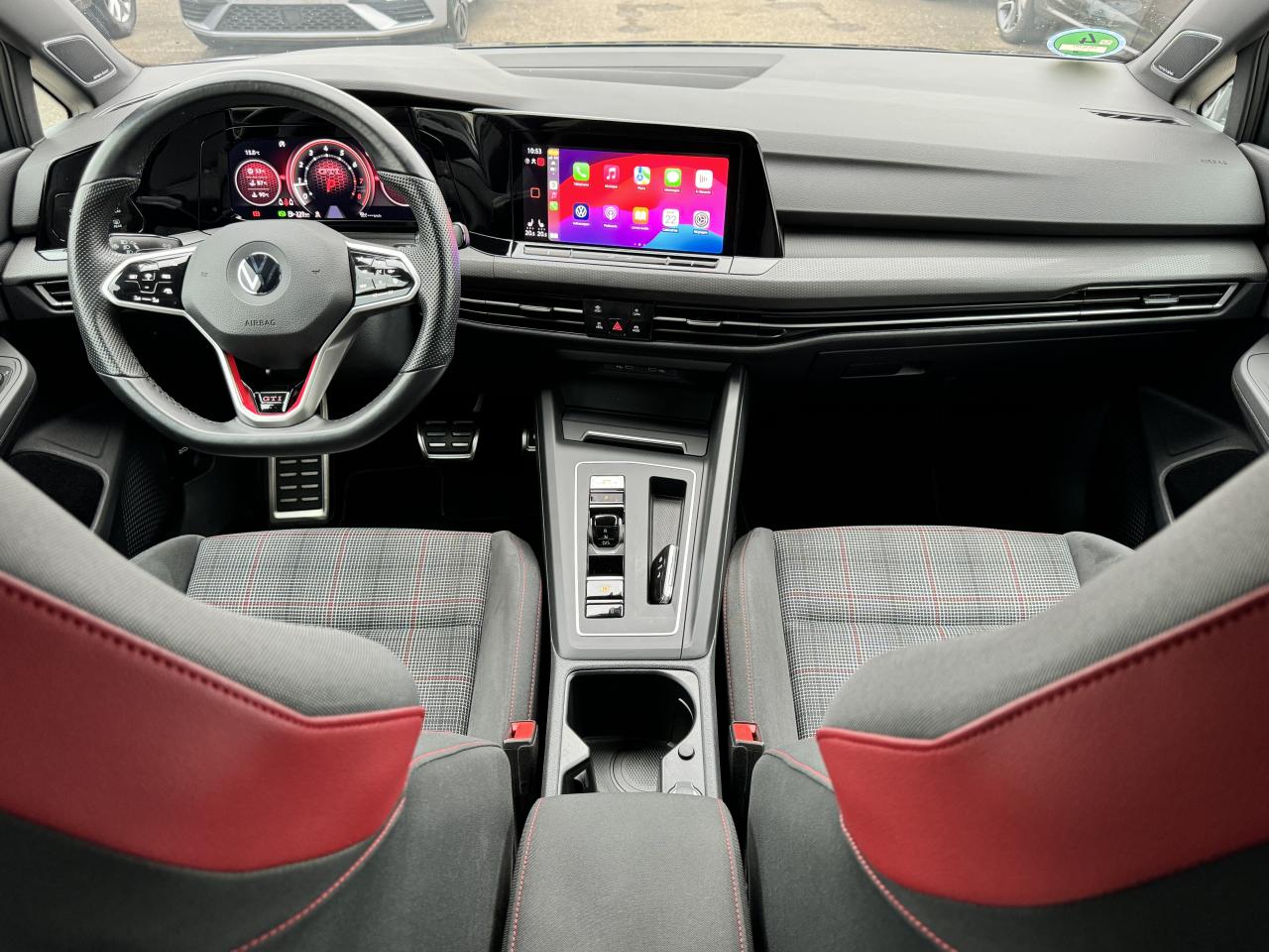2 interfaces USB-C à l'avant et 2 prises de chargement USB-C derrière l’accoudoir pour les passagers arrière2 spots de lecture à l'avant et à l'arrièreAccoudoir central avant réglable en hauteur et en profondeur avec compartiment de rangementActivation automatique des feux de détresse en cas de freinage d'urgenceaide au freinage d'urgenceAlerte de perte de pression des pneusAntipatinage électronique ASRApp-Connect sans filApple CarPlay / Google Android Autoavertisseur franchissement de ligneBadge GTi sur les ailes avant et le volet arrièreBaguette lumineuse entre les projecteursBanquette arrière rabattable 2/3 - 1/3 avec trappe à skisCiel de pavillon noir soulClimatiseur "Air Care Climatronic" 3 zones et filtre anti-allergène et éléments de commandes à l'arrièrecontrôle pression des pneusCorrecteur électronique de trajectoire ESPdétecteur de pluieDigital Cockpit Pro : combiné d’instruments digital avec écran digital haute résolution couleur de 10.25”direction assistéeE-call : Appel d’urgence manuel ou automatiqueEclairage à LED de la plaque d'immatriculation arrièreEclairage d'ambiance - 30 couleurs et éclairage de plancher à l'avantEmergency Assist ESPEtriers de frein rouge à l'avant et à l'arrièreFatigue Detection : Système de détection de fatigue du conducteurfermeture centraliséefixation isofixFixation pour siège enfant ISOFIX (arrière, x2)Frein de stationnement électromécanique avec fonction d’immobilisation en pente ‘Auto hold’ et assistant de démarrage en côteFront assistFront assist avec freinage d’urgence et détection de piétonsGPS couleur - tactileIndicateur de température extérieure avec avertisseur de gelInterface Bluetooth pour téléphone portable (mains-libres)Lane Assistant : assistant de maintien dans la voieordinateur de bordPédalier et repose-pied en acier inoxydable brosséPack visibilitéPalettes au volantPare-chocs avant et arrière spécifiques GTI, prise d'air en structure nid d'abeilles à l'avantParkPilot : Système d’aide au stationnement avant/arrière avec signaux sonores et visualisation de la distance des obstacles sur l’écranphares à LEDProjecteurs antibrouillard dans le bouclier avant et feux de braquageProtection antidémarrageRégulateur électronique de couple MSRRégulateur de vitesse adaptatif et prédictif 'ACC' jusqu’à l’arrêt completRétroviseur intérieur électrochromeRear Assist : Caméra de recul avec visualisationSélecteur de mode de conduiteSélection du profil de conduiteService d’appel d’urgence (inclus 10 ans et disponible indépendamment de l’inscription dans le système d’infotainment)sièges chauffantsSièges sport à l'avant spécifiques GTI avec appuis-tête intégrés Sign Assist: Reconnaissance des panneaux de signalisation et affichage sur le ‘Digital Cockpit’ et l’écran du système de radionavigationSortie d'échappement chromée à gauche et à droitestop & startSystème d'antiblocage des roues ABSSystème Navigation & Infotainment ‘Discover Media’ avec «Services de streaming et radio via Internet»Système Start/ Stop avec récupération d'énergie de freinageTémoin et alerte sonore de non-bouclage des ceintures de sécurité avant et arrièreverrouillage automatique des portes en roulantVerrouillage centralisé avec télécommande à fréquence radio par clé rétractableVitres arrière et lunette arrière surteintées à 65%Volant chauffantVolant multifonctionsVolant sport multifonction en cuir spécifique GTI avec commandes tactiles, retour haptique